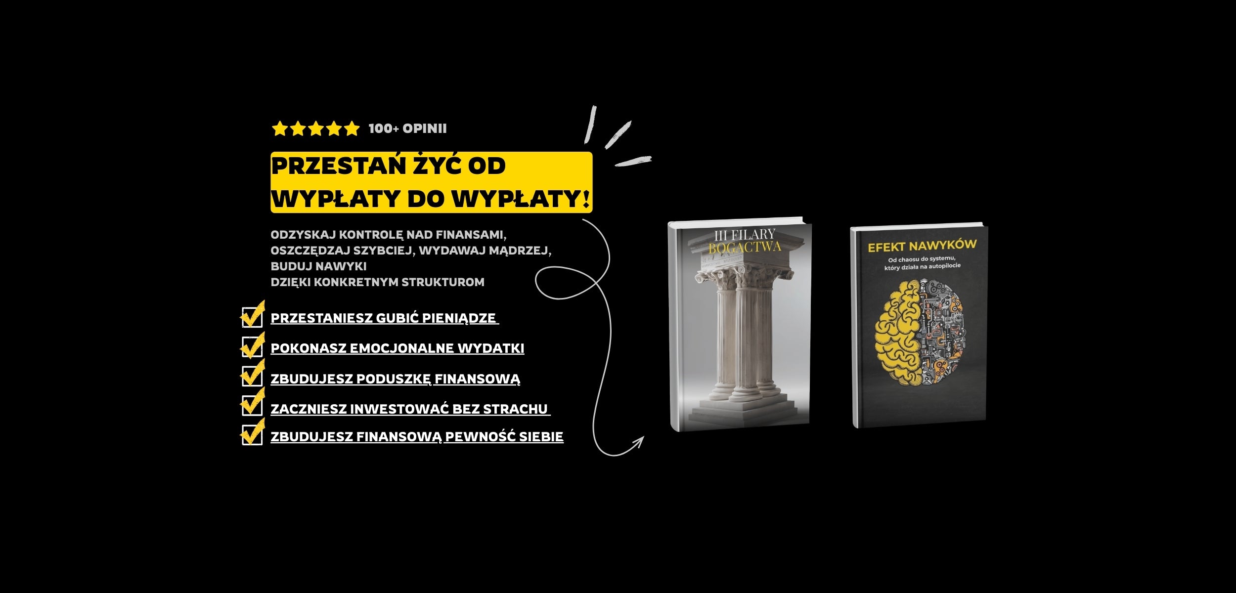 Ten e-book to ponad 200 stronny przewodnik w którym przeprowadzę cię krok po kroku przez twoją finansową i mentalną drogę.